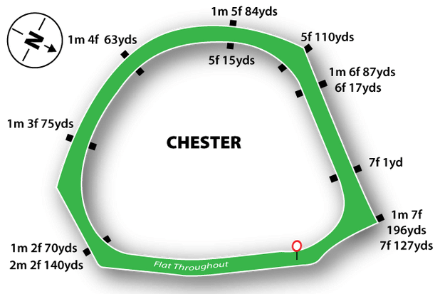 Left handed, very sharp. A circular course that's only just over a mile round, it's on the turn almost throughout and has a run-in of under two furlongs, heavily favoring those that race to the fore as it's easy to find trouble with little time to recover. A high draw at Chester is a major disadvantage, even in middle-distance races, and particularly so in large fields.