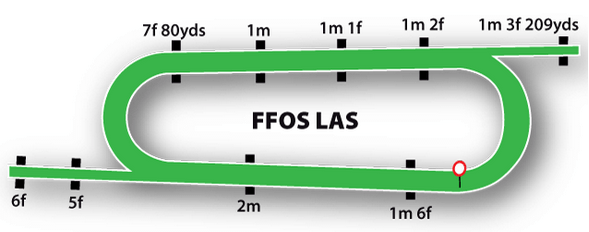 A left-handed track, essentially galloping in nature. Approximately a mile and a half in extent, the course is very flat and fair, with a long home straight, including an extension to enable a straight track for races over five and six furlongs.